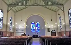 Zur Ausstattung der Kirche gehören u. a. vier Fenster im Altarraum, die der Maler Günther Swiderski (Saarbrücken) im Jahr 1988 entwarf, sowie ein Altarkreuz von 1988 des Bildhauers Harry Leid (Heusweiler).[5]