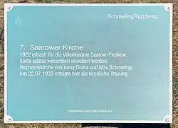 Die Evangelische Kirche in Bad Saarow im Landkreis Oder-Spree im Bundesland Brandenburg wurde im Jahr 1922 erbaut. In ihr heirateten am 22. Juli 1933 der deutsche Schwergewichtsboxer Max Schmeling und seine Verlobte Anny Ondra.[1] Sie gehört zum Kirchenkreis Oderland-Spree der Evangelischen Kirche Berlin-Brandenburg-schlesische Oberlausitz.
