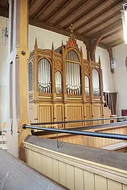 Von der 1885 von August Hardt eingebauten, zweimanualigen Orgel ist noch der neogotische Prospekt erhalten. Fünf spitzbogige Pfeifenflachfelder werden durch Pilaster, die in kleine Fialen übergehen, gegliedert. Dem überhöhten mittleren Flachfeld sind ein krabbenbesetzter Giebel mit Dreipass und ein Kreuz aufgesetzt. Im Jahr 1968 baute Günter Hardt hinter dem historischen Prospekt ein neues Orgelwerk. Das Schleifladen-Instrument verfügt über 25 Register auf zwei Manualen und Pedal mit insgesamt 1650 Pfeifen. Die Spieltraktur ist mechanisch, die Registertraktur elektrisch.