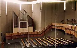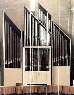 Dann wurde von der Orgelbaufirma Walcker eine Schleifladenorgel mit 19 Registern und 1600 Pfeifen erbaut. Diese Orgel wurde anschließend auch im Neubau wieder aufgestellt und in den 1980er und 1990er Jahren erweitert (Trompetenregister, Gemshornregister, Tremulant), so dass die Orgel auch für Konzerte genutzt werden kann.[42][43]
