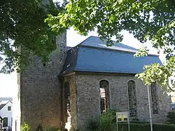 Die dreijochige Saalkirche wurde 1814 aus hammerrechtem Bruchstein errichtet. Das Kirchenschiff ist mit einem Mansardwalmdach gedeckt. Der romanische Westturm mit einer Biforie an der Nordseite stammt vermutlich aus dem 13. Jahrhundert, er ist mit einem gotischen Spitzhelm bekrönt.