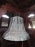 Der Turm beherbergt ein Dreiergeläut. Andreas Hamm aus Frankenthal goss im Jahr 1878 drei Glocken mit einem Durchmesser von 900, 700 und 600 mm. 1917 wurden die beiden größten an die Kriegsrüstung abgeliefert, die dritte wurde 1920 in Zahlung gegeben, als man ein neues Geläut anschaffte.[12]