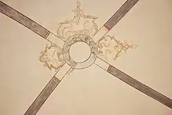 Der Chorbogen und die Gewände der Chorfenster und der Südtür sind mit Diamantquaderung (um 1600) bemalt.[9] Das Kreuzgratgewölbe im Chor hat oben in den Gewölbekappen Rankenmalereien.