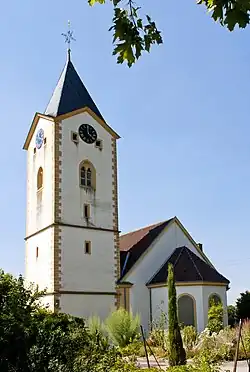 Die Evangelische Kirche in Leutershausen, einem Ortsteil von Hirschberg an der Bergstraße im Rhein-Neckar-Kreis im Nordwesten Baden-Württembergs, wurde im 18. Jahrhundert erbaut. Der Turm stammt aus dem 14. Jahrhundert.
