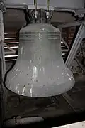 Der mittelalterliche Chorturm beherbergte ursprünglich die Glocken. Die älteste Glocke datiert aus vorreformatorischer Zeit. Die Firma Rincker goss 1803 eine Glocke, die 1870 zersprang und neu gegossen wurde. Dasselbe Schicksal widerfuhr ihr 1892/1893. Sie wurde im Ersten Weltkrieg an die Rüstungsindustrie abgeliefert und eingeschmolzen. Rincker goss nach dem Zweiten Weltkrieg zwei neue Glocken, die wie die alte Glocke im neuen Westturm aufgehängt wurden.[8] Das Dreiergeläut erklingt im Gloria-Motiv.[11] Der Glockensachverständige der Rheinischen Kirche empfahl 2019 in einer gutachterlichen Stellungnahme die historische Glocke weitgehend zu schonen. Daraufhin beschloss das Presbyterium die Anschaffung einer neuen Glocke als Ersatz.