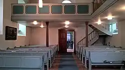 Eine hölzerne Winkelempore im Norden und Westen wurde wahrscheinlich im Renovierungsjahr 1849 eingebaut und 1969 erneuert. Die kurze Nordempore dient als Aufstellungsort der Orgel. Die Empore ruht auf drei schlanken, runden Holzsäulen, die in kubusförmigen Kapitellen enden und rot-marmoriert bemalt sind. Die Brüstungen haben querrechteckige kassettierte Füllungen in türkiser Fassung mit roten Profilen. Das hölzerne Kirchengestühl mit geschwungenen Wangen lässt einen Mittelgang frei.