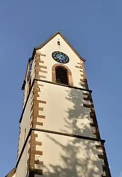 - Eine ältere Orgel wurde durch ein Instrument von Fridolin Merklin 1893 ersetzt. Sie besaß zwei Manuale, ein Pedal und 15 Register. Die Merklin-Orgel wurde 1979 durch eine von Georges Heintz aus Schiltach ersetzt. Das Werk mit Schleiflade, mechanischer Spiel- und Registertraktur besitzt zwei Manuale, ein Pedal und 13 Register und zwei Vorabzüge.[8] Im Juli 2020 wurde die Orgel vollständig saniert. Es wurden nicht nur alle Orgelpfeifen ausgebaut, sondern auch die Elektrik erneuert.[9]