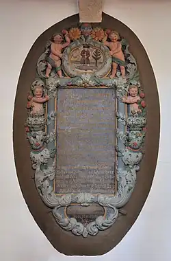 An der Nordwand des Langhauses befinden sich drei Epitaphe, die an folgende Personen erinnern: das erste an den Pfarrer Johann Schöne (14. August 1678), das zweite an den Vogt und Badwirt Johann Schantzlin (7. Januar 1719), den Richter und Badwirt Hand Schantzlin sowie den Richter und Badwirt Sebastian Schantzlin (16. März 1747), mit dem dritten wird Johann Margaretha Bohm (28. Dezember 1728) und Johann Daniel Bohm (18. September 1732) gedacht.