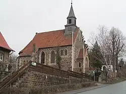 Die neugotische Saalkirche wurde 1913–15 nach einem Entwurf der Regierungsbaumeister Karl Meyer und Friedrich Wilhelm Schick als Ersatz für die bei der Flutung des Edersees abgebrochene Kirche gebaut. Das Kirchenschiff ist mit einem Satteldach bedeckt, aus dem sich im Osten ein quadratischer schiefergedeckter Dachreiter erhebt, der die Turmuhr beherbergt. Darauf sitzt ein achteckiger Aufsatz, hinter dessen Klangarkaden sich der Glockenstuhl befindet. Bekrönt ist der Dachreiter mit einem achtseitigen spitzen Helm. Der eingezogene, dreiseitig abgeschlossene Chor steht im Westen. Die Sakristei ist am Südwestende unter dem Schleppdach des Kirchenschiffs angebaut.