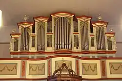 Im Jahr 1680 schloss die Gemeinde mit Meister Chunrad aus Angersbach einen Vertrag über einen Orgelneubau, der sechs Register auf einem Manual ohne Pedal umfassen sollte.[19] Chunrads Erstlingswerk kam nicht zur Ausführung. Stattdessen wurde eine Orgel von Georg Henrich Wagner aus Lich bestellt, der im selben Jahr lieferte. Nach mehreren Reparaturen wurde die Orgel 1783 aufgrund von Baufälligkeit abgetragen.