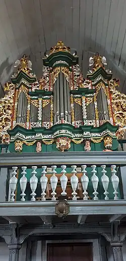 Die Orgel mit dem barocken Orgelprospekt stammt aus dem Jahr 1705 und wurde von Johann Josua Mosengel gefertigt. Sie verfügte ursprünglich über 13 Stimmen und zwölf Register. Ein neues Orgelwerk wurde 1902 von Orgelbaumeister Carl Novak (Königsberg (Preußen)) eingebaut; das Instrument verfügte nun über 20 Stimmen. 1998 wurde hinter dem alten Prospekt durch die Werkstatt Zych (Wołomin, Woiwodschaft Masowien) ein neues Orgelwerk mit mechanischer Traktur und 23 Registern eingebaut. Der barocke Orgelprospekt wurde 1744 restauriert.[5] Die Orgel wird für Konzerte, wie die Pasymer Konzerte der Orgel- und Kammermusik (Pasymskie Koncerty Muzyki Organowej i Kameralnej) genutzt.[6]