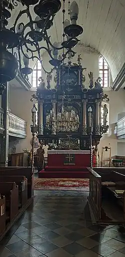Die Kirche beherbergt einen manieristischen Altar aus dem Jahre 1673 mit einer Darstellung der heiligen Dreifaltigkeit von C. Helmke aus dem Jahr 1713.[1] Außerdem befinden sich hier drei Grabplatten aus dem 17. Jahrhundert und ein überlebensgroßes Kruzifix aus dem 15. Jahrhundert, das an der nördlichen Emporensäule steht.