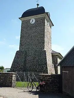 Die Saalkirche aus Bruchsteinen besteht aus dem mittelalterlichen Kirchturm, dessen Westecken durch Strebepfeiler gestützt werden, dem 1767 errichteten Kirchenschiff, das sich nach Osten anschließt, und dem dreiseitig abgeschlossenen Chor. Die glockenförmige Haube des Turms ersetzte 1792 einen spitzen Helm. Das flache Satteldach des Kirchenschiffs reicht bis zum dreiseitigen Abschluss, wo es sich als Teil eines Zeltdaches fortsetzt. Im Westen des Innenraums steht eine Empore auf zwei dorischen Säulen. Die Kirchenbänke wurden um 1800 aufgestellt. Die Kanzel stammt aus dem 18. Jahrhundert.