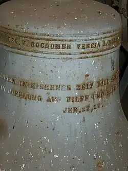 Im Turm hängen zwei Stahlgußglocken, die 1922 vom Bochumer Verein gegossen wurden.[2]