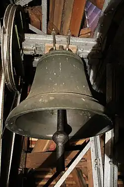 Im Jahr 1858 beherbergte die Kirche zwei Glocken. Die älteste, kleine Glocke stammte aus dem Jahr 1582 und wurde wahrscheinlich aus der Vorgängerkirche übernommen. Nachdem sie gesprungen war, schaffte die Gemeinde 1892 drei neue Glocken an. Zwei von ihnen wurden 1917 zu Rüstungszwecken abgeliefert, von denen eine 1922 ersetzt wurde. 1942 musste wieder eine Glocke abgegeben werden. Seit 1951 ist das Dreiergeläut wieder vollständig.[6] Die Firma Rincker goss die neuen Glocken mit scharfem Zierring auf dem Wolm.
