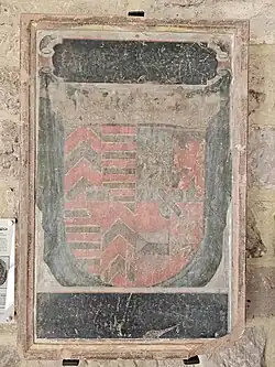 Der Gedenkstein erinnert an die umfassende Renovierung der Kirche, die im Mai 1616 auf Initiative der Baumeister aus Wallroth und Hintersteinau in Angriff genommen wurde. An diesem Tag wandten sich die Baumeister an die Witwe des Grafen Philipp Ludwig von Hanau, Katharina Belgica, mit der Bitte, den baufälligen Zustand der Kirche zu beheben. Die Gräfin ließ die Kirche gründlich renovieren und trug damit maßgeblich zur Instandsetzung bei. Zum Gedenken an ihre Unterstützung wurde ein Sandstein-Gedenkstein mit Inschrift sowie den Allianzwappen der Gräfin und dem Wappen der Grafschaft Hanau in die Chorwand der Kirche eingelassen. Im Zentrum des Steines prangt das Ehewappen des Grafen Philipp Ludwig II. von Hanau (1595–1612) und seiner Gemahlin Catharina Belgica (1578–1648). Die obere Inschrift enthält die Jahreszahl MDXVIII (1618), während die untere Inschrift leider nicht mehr lesbar ist.[1]