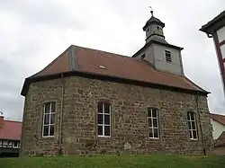 Die Saalkirche wurde 1753 nach einem Entwurf von Johann Friedrich Jussow (1701–1779), dem Vater von Heinrich Christoph Jussow, gebaut. Das Kirchenschiff hat einen dreiseitigen Abschluss im Osten. Auf dem Satteldach erhebt sich im Westen ein Dachreiter mit quadratischem Grundriss, der hinter den Klangarkaden den Glockenstuhl mit drei Kirchenglocken beherbergt. Bedeckt ist der Dachreiter mit einer schlanken Laterne mit der Turmuhr und deren Zifferblättern an allen vier Seiten.