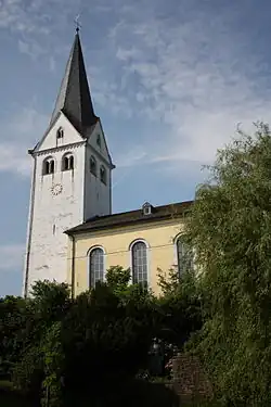 Ursprünglich wurde an dieser Stelle um 700 erstmals eine Holzkirche errichtet. Diese wurde im Jahr 772 durch einen Brand durch heidnische Sachsen zerstört (gemäß Landrat Sybel). Um 1000 erfolgte mit Hilfe des Stiftes St. Cassius Bonn der Bau eines steinernen Chorgebäudes im romanischen Stil. Um 1100 erfolgte eine Erweiterung Richtung Westen durch ein Kirchenschiff. Der Bau der Sakristei 1522 und der Bau des Seiten- und Mittelschiffes durch den Homburgischen Grafen Wilhelm dem Älteren 1568 komplettierten die Kirche. Wegen der Baufälligkeit des alten Kirchenschiffes errichtete man 1841–1843 ein neues Kirchenschiff, dessen Einweihung am 22. November 1843 stattfand.