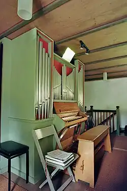 Die erste Orgel war ein Geschenk von Friedrich Ludwig von Buseck. Wie damals üblich, wurde der Organistendienst mit der Lehrerstelle verbunden. Die barocke Orgel wurde 1864 durch ein einmanualiges Werk mit Pedal von Johann Georg Förster ersetzt, das sieben Register besaß. 100 Jahre später erbaute Bruno Döring eine neue Orgel mit acht Registern und mechanischer Traktur. Die Disposition lautet wie folgt:[16]