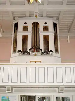 Die Orgel der Kirche, eine sogenannte spanische Orgel, wurde 2002 nach den Plänen des Orgelbauers Matthias Wagner (Essen) erbaut, und war nach der Spanischen Orgel in der Neustädter Kirche in Hannover die zweite ihrer Art in Deutschland. Das Orgelprospekt wurde von Schreiner Erwin Kreuzer gebaut. Die waagerecht aus dem Prospekt in das Kirchenschiff hineinragenden Orgelpfeifen sind das markanteste optische Merkmal des Instruments. Sie werden als „Spanische Trompeten“ bezeichnet.[4]