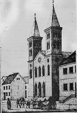 So schrieb Hübsch in seinem Entwurf: „… aber für ein in doppelter Hinsicht trauriges Ereignis müßte man es halten, wenn die guterhaltenenen Theile der beiden schönen mittel-alterlichen Kirchen, namentlich die Fensterverzierungen und massigen Gesimse zerschlagen in das Fundament geworfen würden, um darauf eine Kirche mit vergänglichen und demnach theuereren hölzernen Gesimsen zu errichten – mit einer verputzten angestrichenen Facade an einem Orte, in dessen Nähe sich die schönsten... Steine befinden“ (GLA 422/1868).