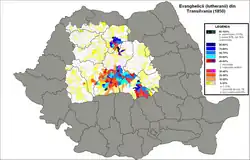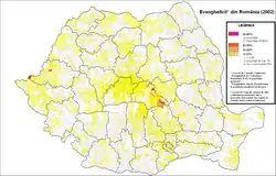 Die evangelischen Christen in Rumänien (Volkszählung 2002). Südlich und östlich der Karpaten sind auch Evangelikale mitgerechnet