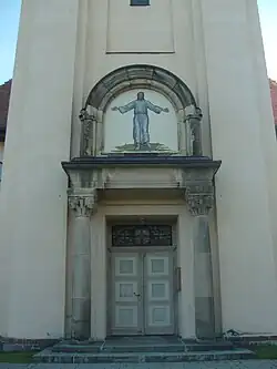 Die Kirche ist im neobarocken Stil gehalten. Der Kirchturm ist 41 Meter hoch und trägt das größte Geläut in Brandenburg. Der einschiffige Kirchenbau ist durch Pilaster und Rundbogenfenster gegliedert und wird durch ein mächtiges Mansarddach gekrönt. Im Osten schließt sich eine durch Rundbogen- und Okuli-Fenster sowie Pilaster und Gesimse gegliederte Apsis an.