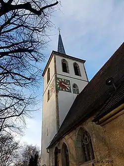 Mit dem Bau der heutigen Kirche wurde im Jahre 1454 begonnen.1954 wurde bei Renovierungsarbeiten zur 500-Jahr-Feier der Kirche unter dem Kirchenschiff eine ca. einen Meter dicke Grundmauer gefunden, welche auf einen Vorgängerbau hindeutet. Aus Denkmalschutzgründen durfte damals nicht weiter gegraben werden. Weitere Fragmente, welche auf einen Vorgängerbau hindeuten, wurden bei der Renovierung 2006/2007 gefunden.