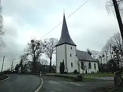 Die spätbarocke Saalkirche mit einem Langhaus aus drei Jochen wurde 1782 unter Verwendung des Kirchturms des spätgotischen Vorgängers erbaut, beide sind mit Ecksteinen versehen. Der Kirchturm im Westen, in dessen Glockenstuhl eine Kirchenglocke von 1519 hängt, wurde mit einem achtseitigen Knickhelm bedeckt.