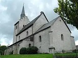 Die kreuzgewölbte, romanische Pfeilerbasilika des gebundenen Systems mit zwei Doppeljochen und einem quadratischen Chor wurde im zwölften Jahrhundert errichtet. Sie steht auf einer Anhöhe am Nördlichen Rand von Bendorf. Zur selben Zeit wurde auch der leicht querrechteckige Westturm erbaut. Der Turm hatte ursprünglich keinen ebenerdigen Eingang. Im obersten Geschoss ist noch der ehemalige Zugang zum Turm und zur Wehranlage erkennbar. Die Schießscharten wurden später zugemauert. Mittelschiff, Turm und Chor haben dieselbe Breite. Die Seitenschiffe werden vom Mittelschiff überragt. Die Kreuzgewölbe werden von starken Säulen und stämmigen Pfeilern getragen. Fenster und Schallöffnungen sind in Rundbogenform gehalten. Das Turmportal der ehemaligen Wehrkirche wurde 1756 eingebaut. Der Oberbau des Turmes mit Treppengiebel und Dachreiter, ist ebenso wie die Abschlussmauern der Seitenschiffe, neuzeitlich. Die Tonnengewölbe in den Seitenschiffen ruhen auf niedrigen, massigen Pfeilern. 1849 wurde umfangreich renoviert. Bis dahin hatte die Kirche auch noch einen nördlichen Zugang. Dieser verschwand bei der fast vollkommenen Erneuerung der Nordseite. Zusätzlich wurden vier Strebepfeiler errichtet, um ein Ausweichen der Grundmauern zu unterbinden.