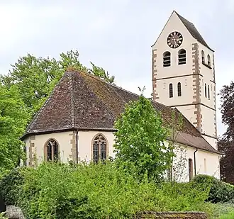 - ↑ Johannes Helm: Die existierenden, verschwundenen und aufgegebenen Kirchen und Kapellen im Markgräflerland und in den angrenzenden Gebieten des ehemals vorderösterreichischen Breisgaues sowie des hochstiftbaselischen Amtes Schliengen. Versuch einer bau– und kunstgeschichtlichen Bestandsaufnahme. Satz und Druck Aug. Schmidt, Müllheim/Baden 1989, ISBN 3-921709-16-4, S. 62.