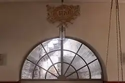 Die hohen Bogenfenster der Seitenwände sind aus wabenförmigen Scheiben zusammengesetzt. Die Fenster der abgekanteten Schmalwände sind oval.