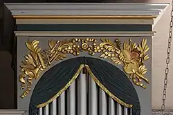 Am Schalldeckel der Kanzel ist das Auge der Vorsehung angebracht. Eine Tafel an der Kanzelrückwand zeigt das Bibelwort „Wer Ohren hat zu hören, der höre“. Der Orgelprospekt ist mit der Darstellung von Engeln und Musikinstrumenten verziert.