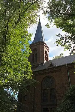 Das Dorf Gröditz, welches einst zur Herrschaft Saathain gehörte, entwickelte sich durch die Ansiedlung des Einsiedelschen Eisenhammers im Jahre 1779 zum Industriestandort. Der Ort erfuhr ein großes Bevölkerungswachstum. Allein zwischen den Jahren 1848 und 1890 hatte sich die hiesige Bevölkerungszahl mehr als verfünffacht.[2] Es wurde eine eigene Kirche im Ort notwendig und schließlich wurde in den Jahren 1890 und 1891 das noch heute bestehende Bauwerk errichtet. Als Baumeister wird Theodor Quentin (1851–1905) angegeben.[3] Der Architekt gilt stilistisch als Vertreter der Neogotik. Er hatte sich zu Lebzeiten besonders in Sachsen und Thüringen im Bereich des Sakralbaus einen Namen gemacht.[2][4]
