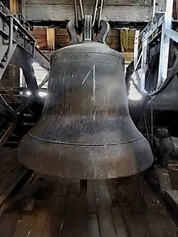 Drei Glocken von 1712, 1833 und 1836 von der Glockengießerei Otto aus Gießen mussten 1917 für Rüstungszwecke abgeliefert werden. Nur die kleine Schulglocke von 1854 blieb erhalten. Die Gemeinde schaffte 1920/1921 vier neue Glocken von den Gebrüdern Schilling aus Apolda an. Wahrscheinlich wurde in diesem Zuge auch die kleine Glocke umgegossen.[35] Die vier großen Glocken wurden 1942 wiederum für Kriegszwecke abgegeben und 1950 durch neue von Rincker ersetzt. Die Kirche besitzt heute ein Fünfergeläut auf dem Wachet-auf-Motiv.[36]