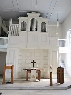 Der Innenraum ist geprägt von der Orgel über dem Altar. Die Rückwand hinter dem Altar gestaltete Caroline Cornill-Dechent aus Metall. Das Taufbecken und die Lampen wurden von den Kunstwerkstätten Klemisch in Offenbach hergestellt. Die Orgel stammt aus der zweiten Hälfte des 19. Jahrhunderts und wurde von Daniel Raßmann gefertigt. Das Instrument mit neun Registern wurde 1960 von Heinrich Voigt und 1972 von Werner Bosch Orgelbau umgebaut und verfügt heute über 14 Register und zwei Manuale.