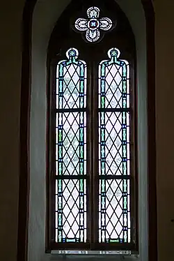 Uneinheitlich in Form und Größe sind die Fenster. Neben vier relativ kleinen Spitzbogenfenstern finden sich an der Südseite zwei größere Rundbogenfenster. Diese sind jünger und wurden nachträglich zur Aufhellung in die Wand gebrochen. Die Spitzbogenfenster stammen aus der Entstehungszeit und zeigen im Maßwerk zum Teil noch deutliche Stilelemente der Gotik.[1]