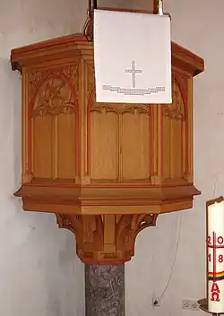 Die Kanzel befand sich ursprünglich an der Südwand der Kirche. Sie wurde 1916 durch eine im Jahr 1871 für die Petrikirche in Mülheim/Ruhr gefertigte neogotische Kanzel ersetzt und hat ihren Standort an der Nordseite der Kirche.[13]