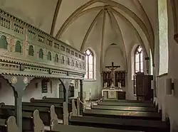 In der Kirche sind mehrere spätgotische Kunstwerke erhalten. Eine geschnitzte Mondsichelmadonna und Figuren der zwölf Apostel stammen von einem 1525 entstandenen Retabel und werden der Werkstatt des sogenannten Benedikt-Meisters aus Hildesheim zugeschrieben.[2] Ebenfalls spätgotisch sind die mit 1558 datierte sechseckige hölzerne Kanzel, der achteckige Taufstein und das Sakramentshäuschen.[1] Im Turm läuten drei Glocken aus den Jahren 1922, 1788 und 1968.