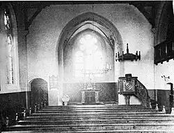 Der 1966 durchgeführte Kirchenumbau wurde vom Architekten Nils-Wolff Hammer aus Trassem geleitet. Dabei wurden der neugotische Altartisch und die hohe Kanzel entfernt und durch einen steinernen Altartisch nach einem Entwurf des Künstlers Manfred Freitag[11] und eine Kanzel in Form eines Lesepults im Design der 1960er-Jahre ersetzt. Die fest eingebauten, schweren und die ganze Breite des Kirchenschiffs ausfüllenden Kirchenbänke wurden durch leichte, transportable und halb so lange Bänke ersetzt. Der Fußboden wurde mit einem schwarzen Steinbelag erneuert. Neu eingebaut wurde am Ende der Kirche eine 7 Meter lange und 4,45 Meter breite, durch eine Wendeltreppe erschlossene Empore für Orgel und Kirchenchor. Um das Kircheninnere heller erscheinen zu lassen, wurden die in Grautönen bemalten Glasfenster entfernt und durch im Stil der 1960er Jahre künstlerisch gestaltete und deutlich hellere ersetzt. Die helle, in Gelb und Weiß gehaltene Farbfassung der Kirche entwarf ebenfalls Manfred Freitag. Die Außentüren der Kirche wurden durch neue, mit Kupferplatten beschlagene Holztüren ersetzt. Der aus heizungstechnischen Gründen gefasste Plan, unterhalb der bestehenden Holzdecke eine tiefer gelegene Decke einzuziehen, wurde nicht realisiert.[12]