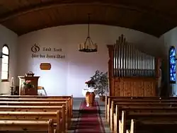 Die Orgel der Orgelwerkstatt Metzler Orgelbau aus Dietikon wurde 1954 gebaut und umfasst 11 Register auf einem Manual und Pedal. Sie ist vorne in der Kirche neben dem Tauftisch aufgestellt.[1]