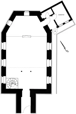Zum 25-jährigen Jubiläum 1862 wurde die Gemeinde reich beschenkt, sodass der Turmbau verwirklicht werden konnte. Gebaut wurde ein 23 m hoher Turm aus Bruchstein mit Bewurf, der an der Spitze ein vergoldetes Kreuz auf einem Knauf trug.[2]