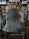 Der Turm beherbergt drei Bronzeglocken.[14] Die kleinste und älteste Glocke wurde um 1300 gegossen. Die beiden großen barocken Glocken stammen von der Glockengießerfamilie Bach. Alle drei tragen Inschriften.[15]
