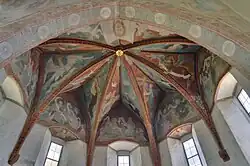 Nachdem die Wandbilder 1966 aufgedeckt worden waren, geht man davon aus, dass der gesamte Innenraum mit Bildern geschmückt war.[16] Nur noch ein kleiner Teil konnte freigelegt werden.