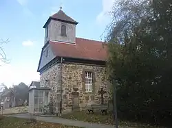 Eine romanische Kapelle wurde im 11. Jahrhundert erbaut. Nach dem Sternerkrieg im 14. Jahrhundert versinkt die Kapelle in Schutt und Asche. Der Wiederaufbau der Kapelle als kleine gotische Feldsteinkirche erfolgte in der zweiten Hälfte des 15. Jahrhunderts. Anfang des 18. Jahrhunderts werden größere Reparaturen erforderlich. Eine Tafel an der Westseite nennt als Abschluss das Jahr 1734. Der Chor im Osten hat einen dreiseitigen Abschluss. Aus dem Satteldach des Kirchenschiffs erhebt sich im Westen ein quadratischer, schiefergedeckter, mit einem Pyramidendach bedeckter Dachturm, der hinter den Klangarkaden den Glockenstuhl beherbergt. Der bis Ende des 20. Jahrhunderts sichtbare Giebel aus Holzfachwerk ist heute verschindelt.