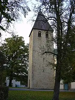 - Die drei Eisenhartgussglocken erklingen in e′, fis′ und gis′. Sie wurden 1925 bei Schilling & Lattermann in Apolda gegossen und läuten an verkröpften Stahljochen, was den Klang erheblich schmälert.