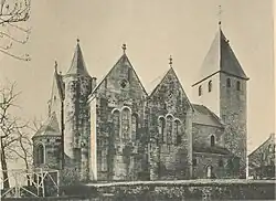 - Außen am Chor befinden sich drei Grabsteine vom frühen 19. Jahrhundert.