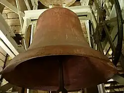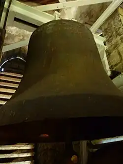 In der Glockenstube hängt an tief gekröpften Jochen ein dreistimmiges Eisenhartgussgeläute mit dem Klang eines G-Tedeums.