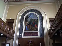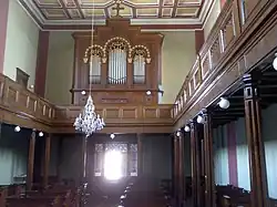 Im Inneren gibt es hinter der hölzernen, mittig stehenden Kanzel, auf die beiderseits zwei Treppen führen, ein Ölgemälde des Malers Pavel Künl von 1852, das Jesus mit der Samariterin am Jakobsbrunnen darstellt. Die Orgel von France Goršič aus dem Jahre 1888 verfügt über 12 Register und 2 Manuale.