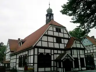 Baugeschichte Das Gebäude wurde laut Inschrift im Jahre 1626 als Ackerbürgerhaus im Fachwerkstil errichtet. Der niederdeutsche Giebelspruch lautet „DE MI NICH GVET IS VN IÄGERT MI DVER FALSKHEIT - DE BRECKT SIK SÖLMS DEN HALS“ (nhd.: Der mir nicht gut ist und ärgert mich durch Falschheit, der bricht sich selbst den Hals). Das Gebäude wurde im Jahre 1669 rechtsseitig um eine Utlucht ergänzt. Ab diesem Jahr wurde es von der gräflich-rietbergischen Hofbeamtenfamilie Nagel bewohnt. Zunächst befand es sich im Besitz des Landvogts Johann Christoph Nagel, bevor es an seinen gleichnamigen Sohn, den Rentmeister Johann Christoph Nagel, überging, der im Jahre 1729 Regierender Bürgermeister von Rietberg wurde. Am 12. März 1699 wurde hier dessen Sohn Franz Christoph Nagel (1699–1764) geboren, der später zum Hofbaumeister des Fürstbischofs von Paderborn avancierte. Später wurde das Haus weiter als Hofbeamtenhaus genutzt und unter anderem von der Witwe des Drosten Clamor Hermann von Meinders, dem Forstmeister und Landvogt Anton Philipp Joseph de Prato, dem Kammerrat Adam Joseph Franz Meinders und dem aus Wiedenbrück stammenden Dr. med. Christoph Heising, der 1781 zum ersten Landphysikus der Grafschaft Rietberg ernannt wurde, bewohnt. Im 19. Jahrhundert diente das Gebäude als Bäckerei, Brauerei und Gastwirtschaft sowie zeitweise auch als Posthalterei. Um 1900 gehörte es der Familie Grondorf, die es an die evangelische Kirchengemeinde verkaufte, die es von der Bauanstalt Bethel zur Kirche mit etwa 60 Sitzplätzen umbauen ließ.